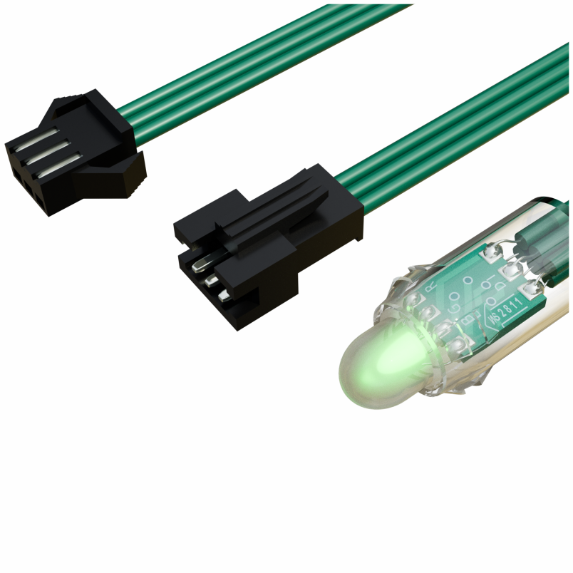 Светодиодный пиксель DIP, d=12 мм, 5В, 0,3Вт, чип WS2811, RGB, зеленый провод (50 штук)