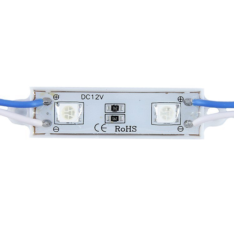 Тип: светодиодный модуль; Тип светодиода: 5050 SMD; Количество модулей в гирлянде: 20шт; Количество светодиодов на модуле: 2шт; Цвет свечения: синий; Цветовая температура: -; Мощность: 0,6Вт; Световой поток: -; Напряжение питания: DC 12В; Степень пыле влагозащиты: IP65; Угол свечения: 120 °; Размер: 48мм(Д) 14мм(Ш) 7мм(В); Длина провода между модулями: 75мм; Цвет корпуса: белый; Примечание: -; Температурный режим работы: -40°С +50°С;